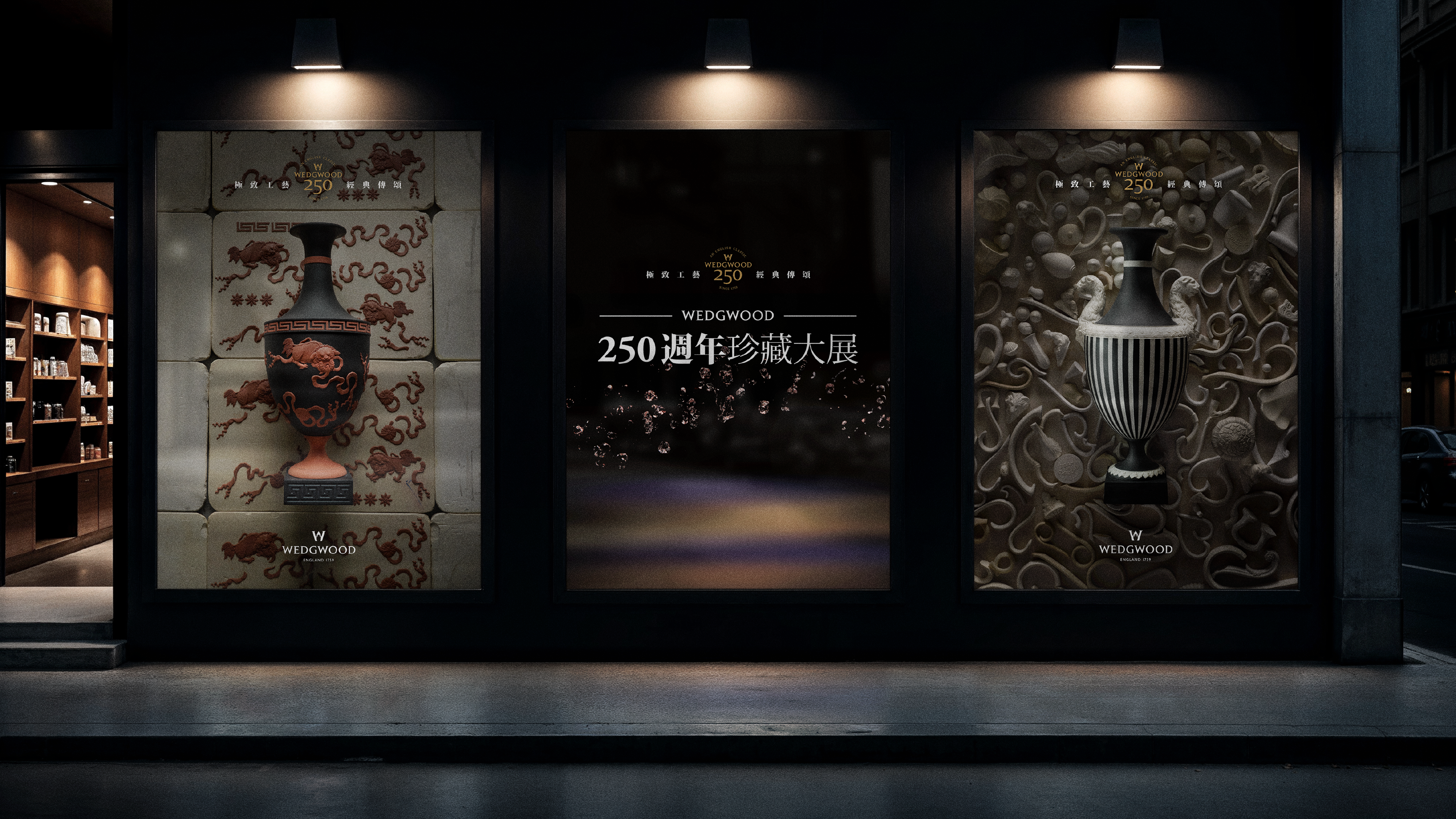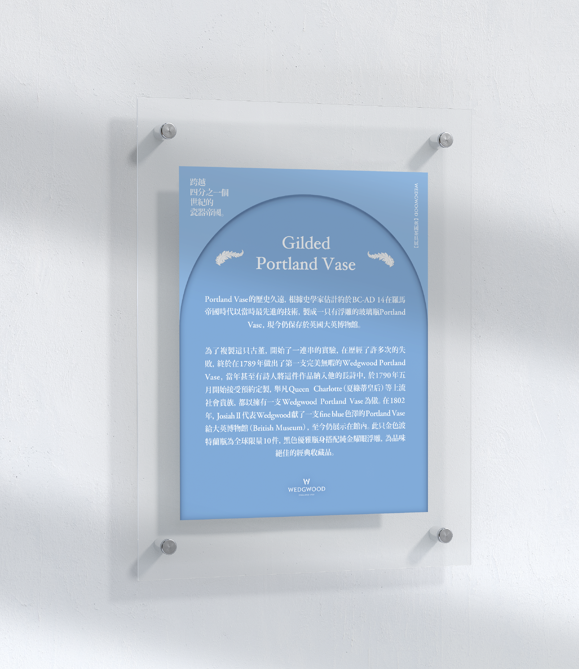 The second exhibition, Wedgwood: 250 Years of Treasured Craft, extended this narrative into a luxury department store, blending art, display, and commerce. Centred on the Gilded Portland Vase, the key visual design used a gold and black palette to evoke a sense of timeless prestige. Limited-edition pieces and new collections were presented alongside tea set displays and live afternoon tea experiences, reconnecting Wedgwood’s legacy with lifestyle culture and further enhancing its reputation in the Asian market.