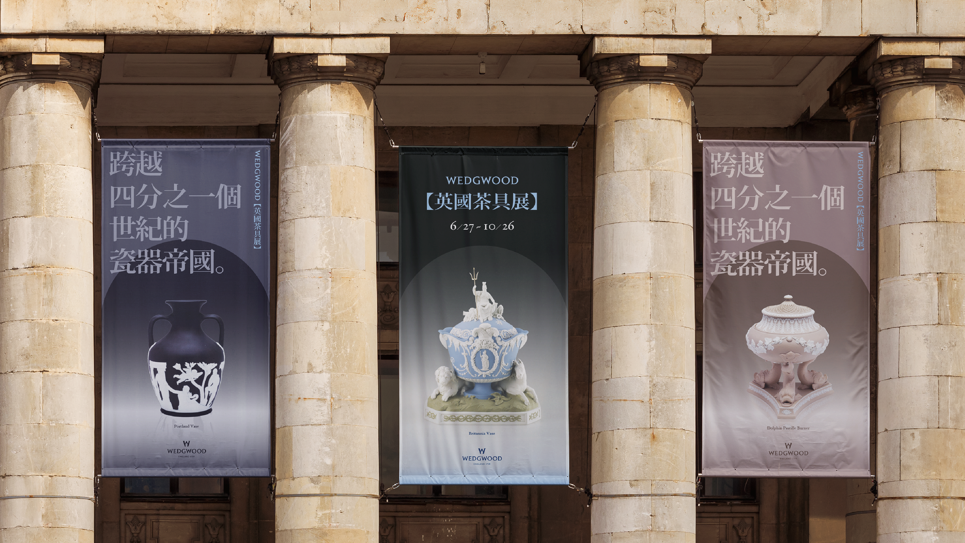 The first exhibition, The Empire of Porcelain: 250 Years of Craftsmanship, transformed the historic Tamsui Little White House into a space that traced Wedgwood’s artistic evolution through trade, design, and masterful ceramic craft. Arch-shaped displays echoed the venue’s architecture, while the colour palette combined Wedgwood’s signature blue with accent hues from key collections to create a calm, museum-like atmosphere. The main highlights were its historic masterpieces, representing Wedgwood’s role in shaping British craftsmanship and brand value. The Dynasty collection, featuring Chinese-inspired motifs, was added to localise the display for the Taiwanese audience and subtly demonstrate the brand’s global adaptability.