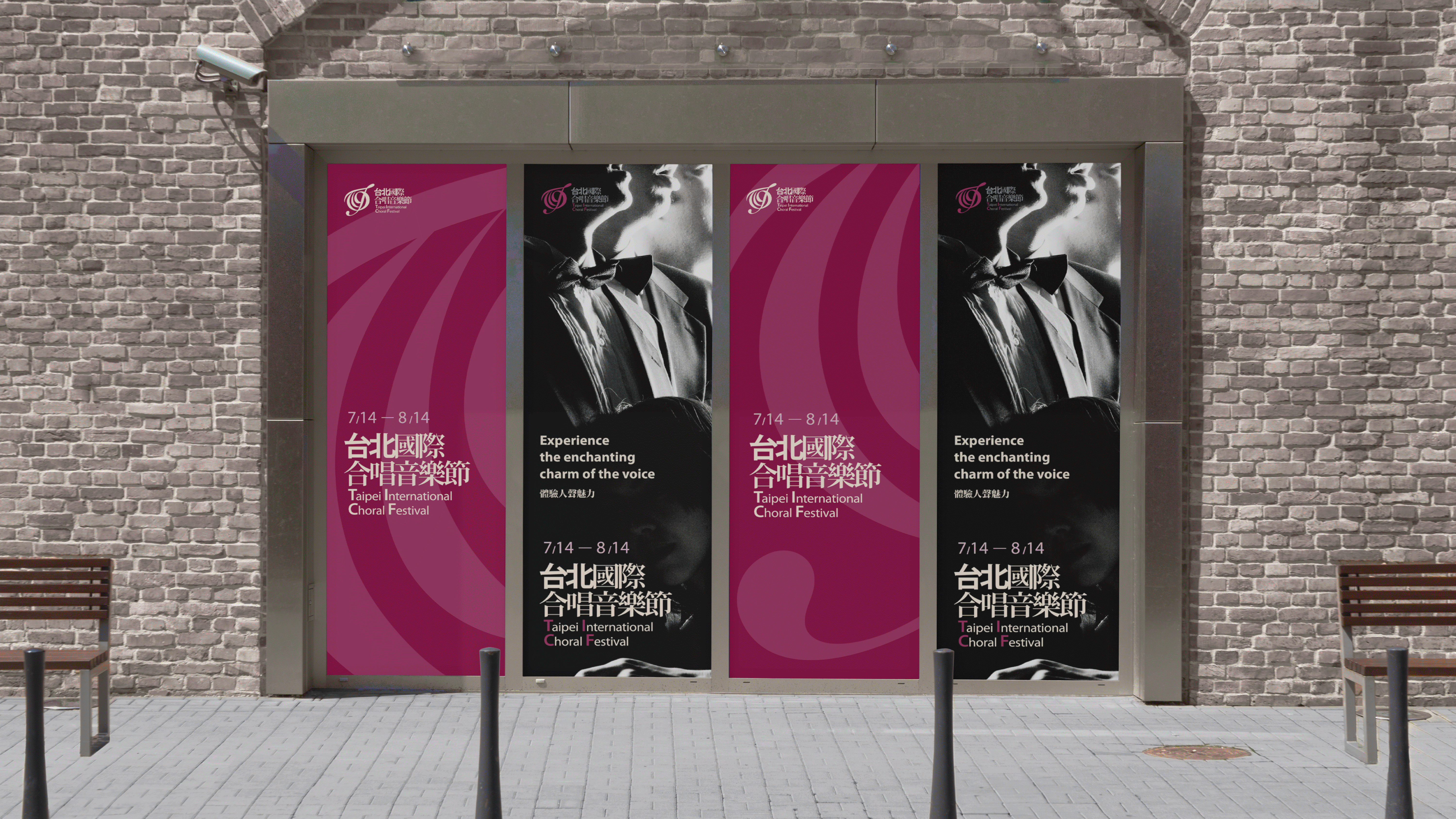 A black-and-white choir image was also created alongside the identity design for that year's festival. It served as a guide for future festivals, demonstrating how to integrate the identity system with key visuals and apply these principles to various promotional materials.